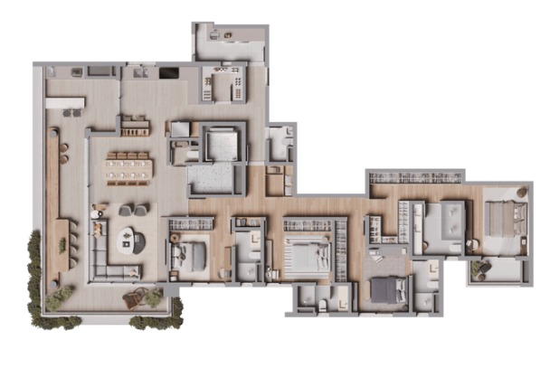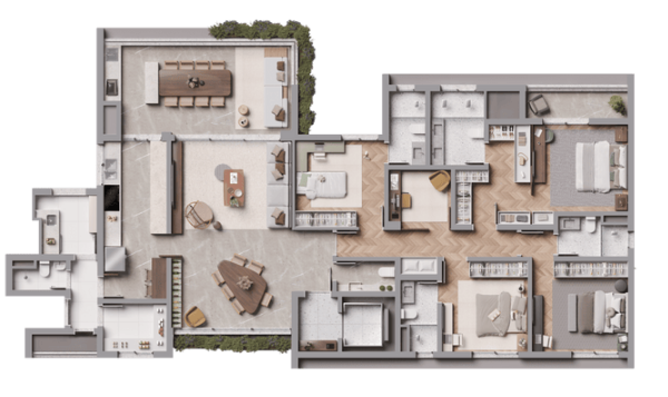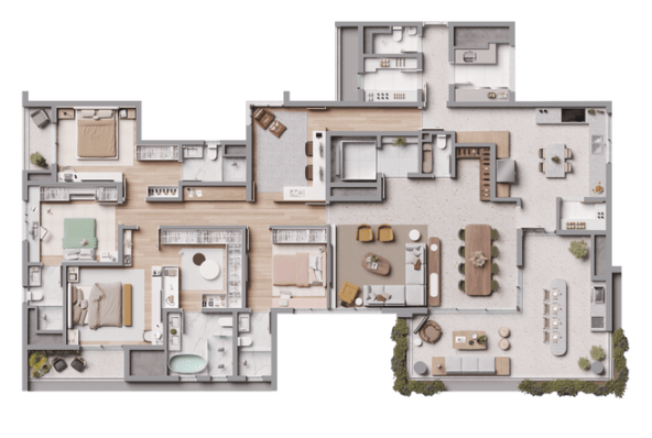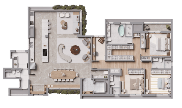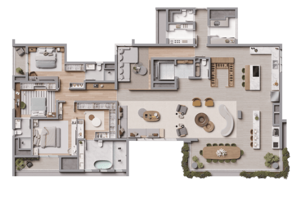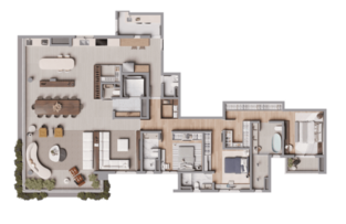 O empreendimento também oferece uma completa infraestrutura de lazer e bem-estar, incluindo piscina aquecida, spa, sauna, fitness center, brinquedoteca, playground, salão de festas, salão de jogos, sport lounge, square garden, sala de reuniões e espaço para massagem. Todos os ambientes foram cuidadosamente projetados para proporcionar momentos de convivência, conforto e sofisticação.